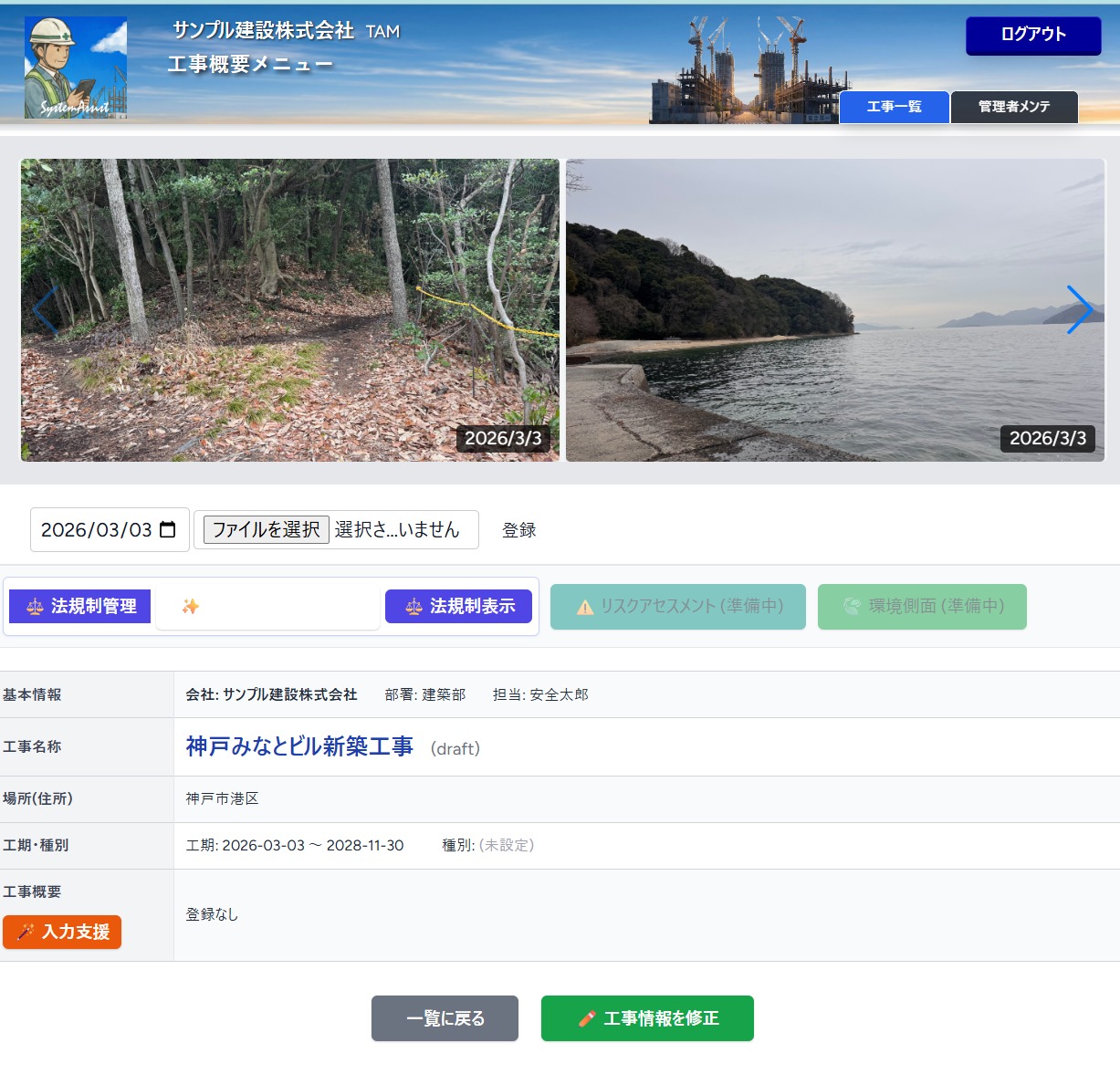 Laravelで工事概要入力支援画面の作成