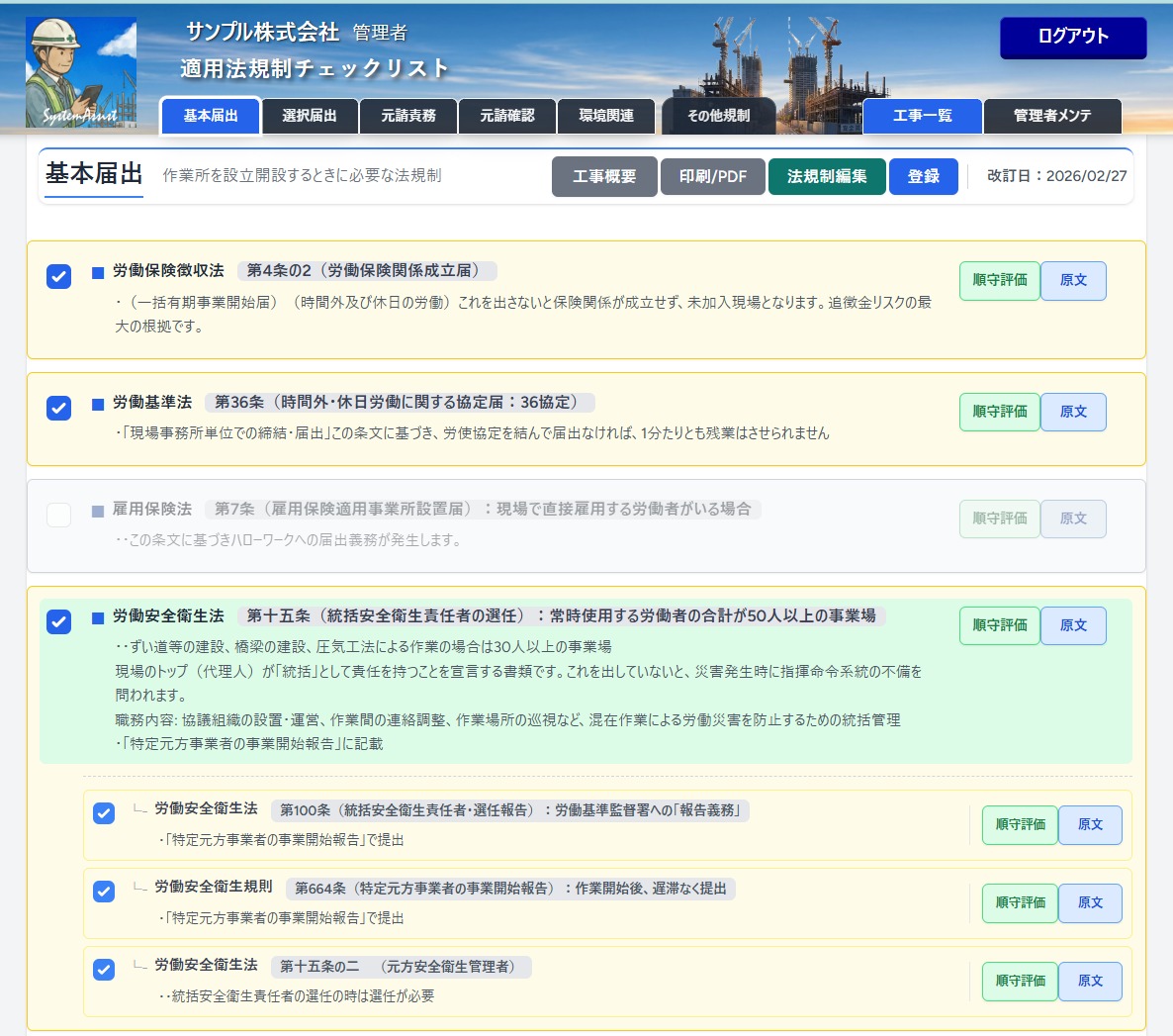 散歩から帰ると、昨日に作成した法規制のWebアプリケーションに、生成AIを実装して工事概要から必要な法規制をセレクトできるようにする