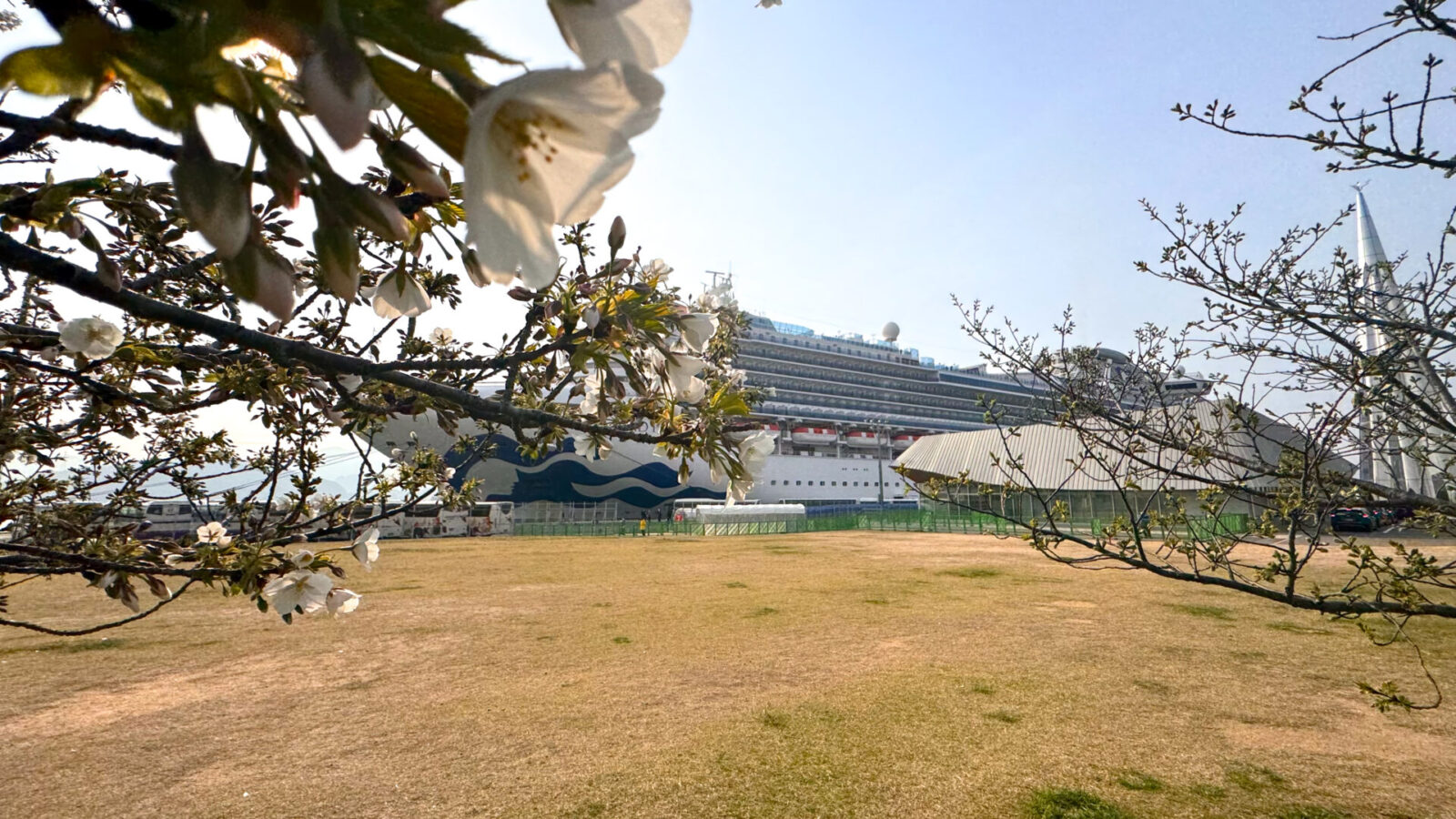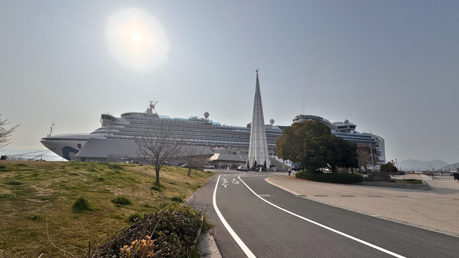 宇品波止場公園の桟橋にクルーズ船