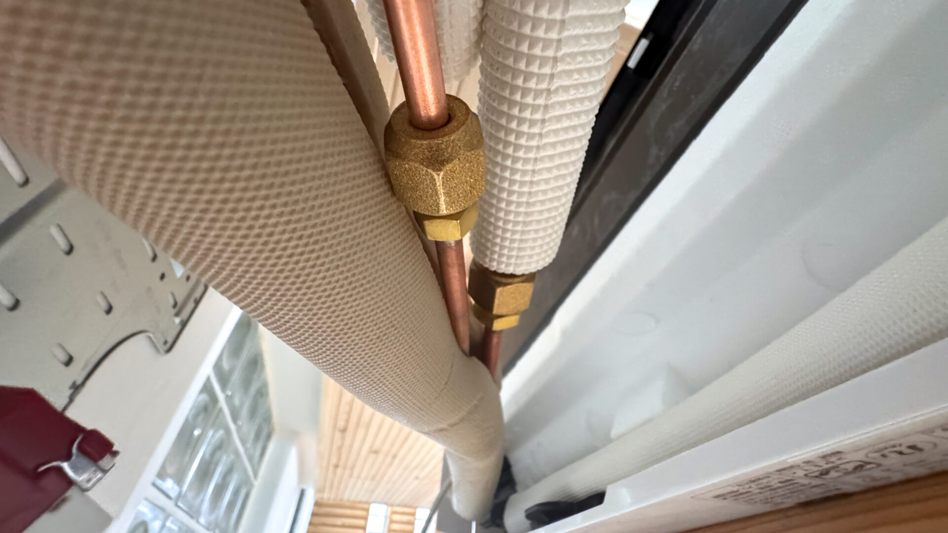 半地下のエアコンの室内機を配管 仮受けの台を作って