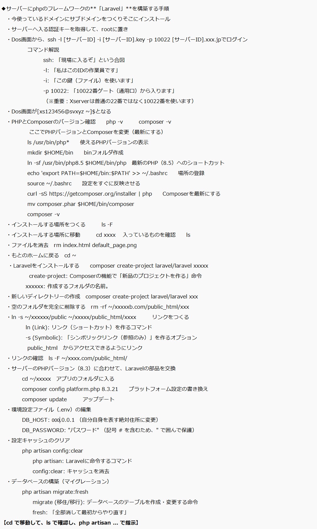 Webアプリケーションを商用に対応するために、作成したアプリを「Laravel」のフレームワークで構築しなおすことに、これはセキュリティホールをなくするためです・・・そのため新しいサブドメインを設定、契約しているサーバーには、フレームワークの「Laravel」自動インストールができませんでした・・Linuxコマンドを使って手動でインストールしてサブドメインに「Laravel」の環境を構築