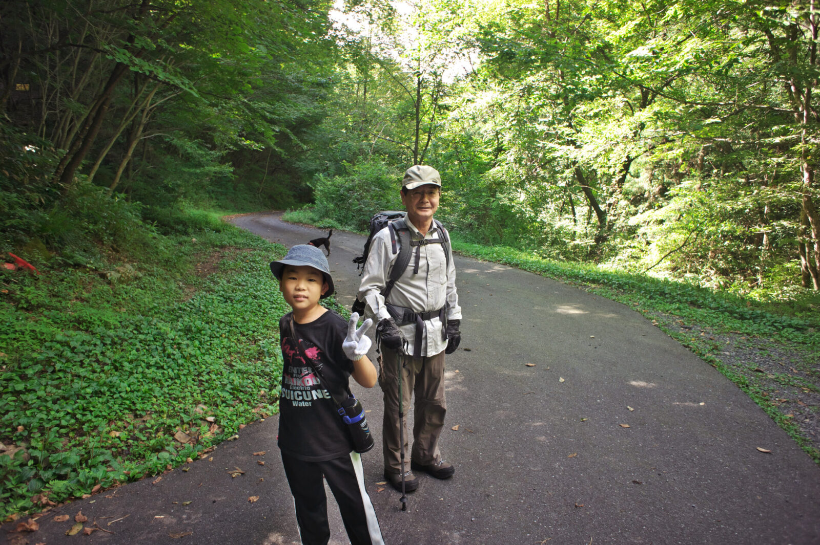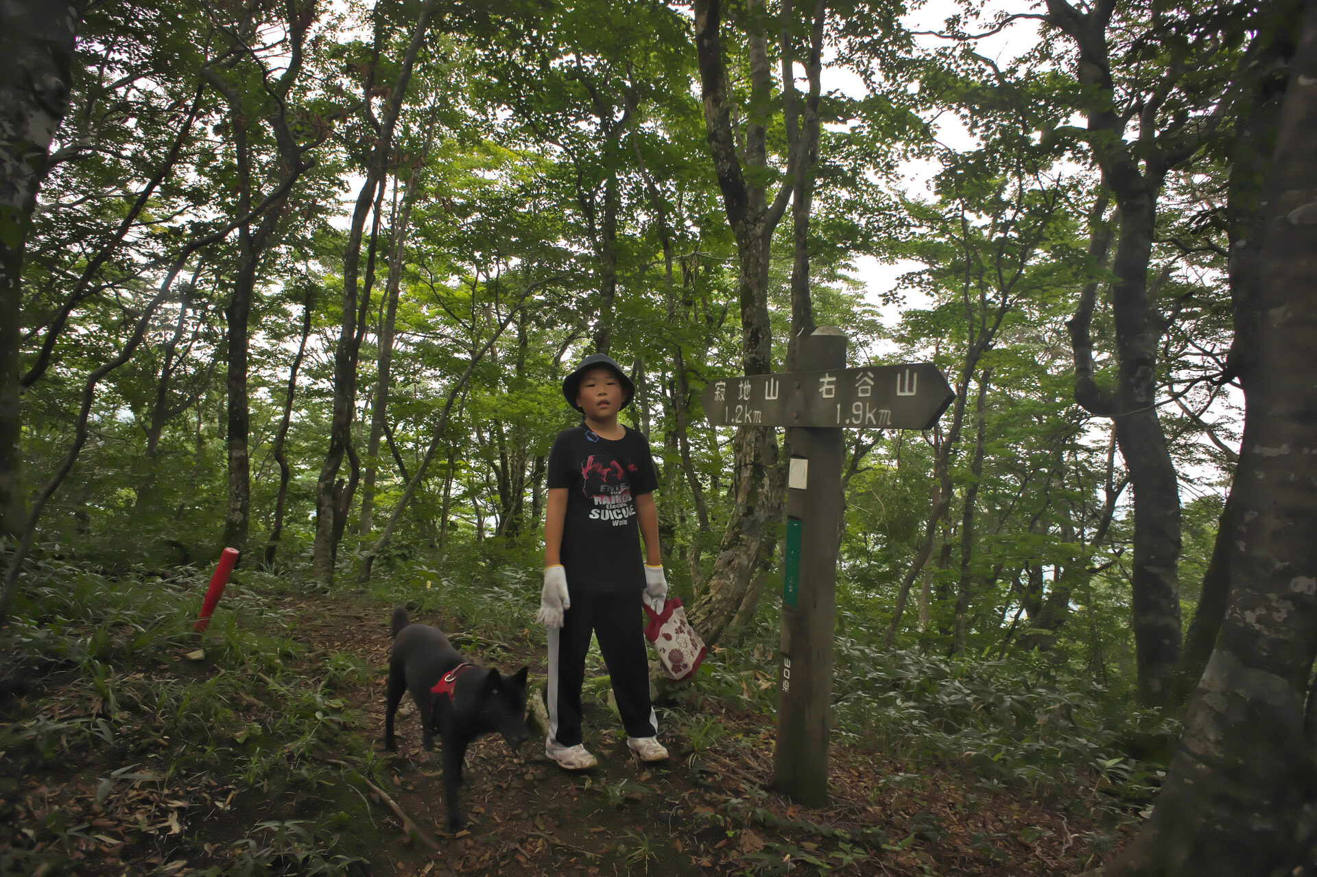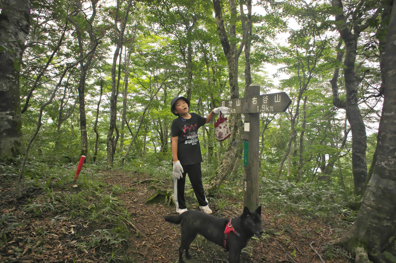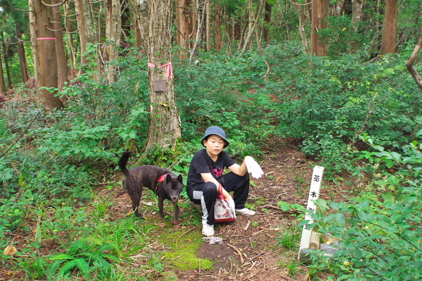 12:46 1235mピーク 標識の横でヒデは疲れ カイも少しお疲れ