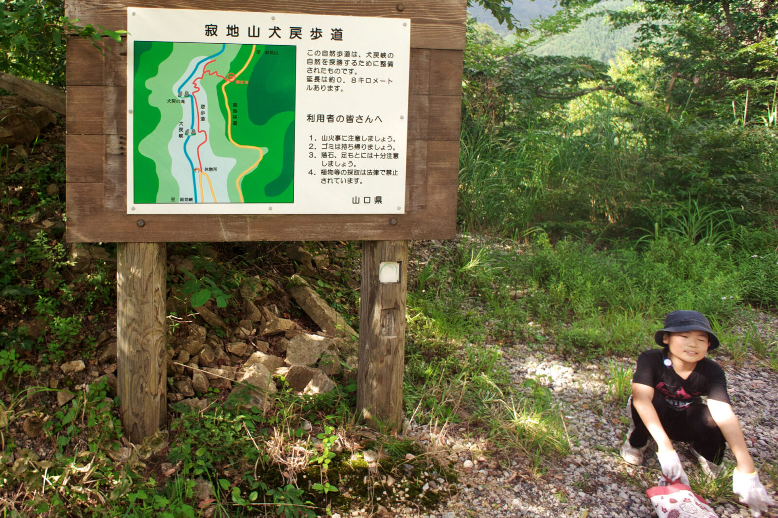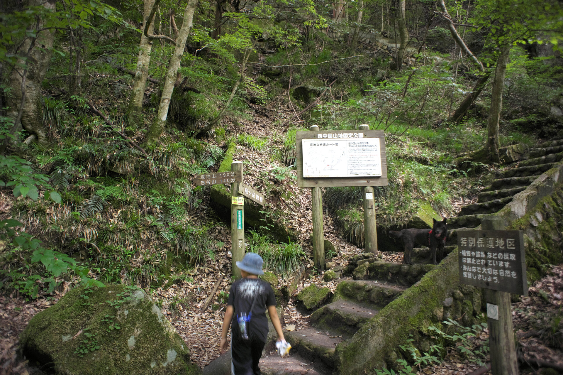広島を7:30に出発、犬戻峡の滝への歩道の入口に車を駐めて9:20に登山開始