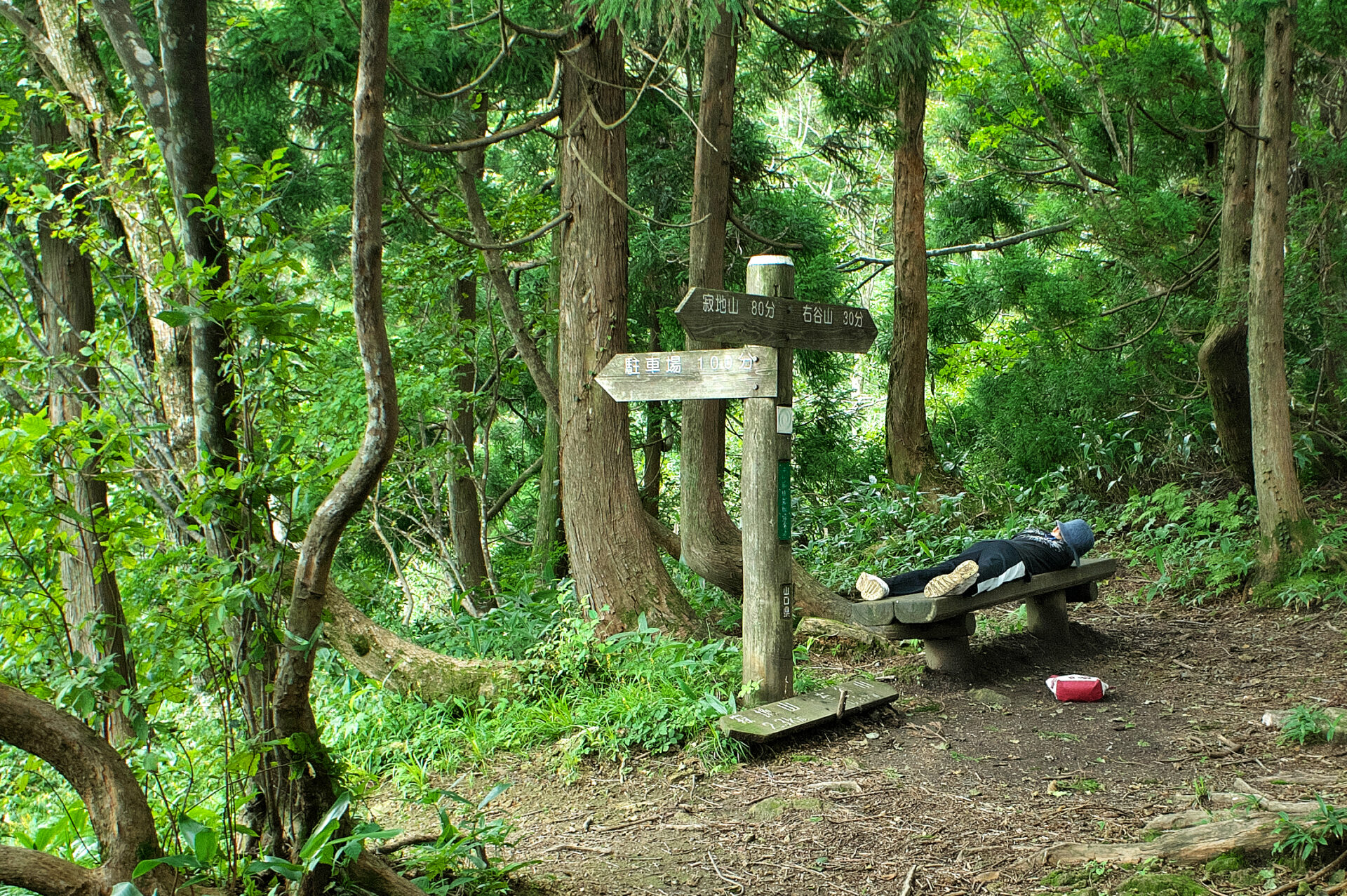 12:16 ヒデは尾根でベンチにダウン 少し休みます