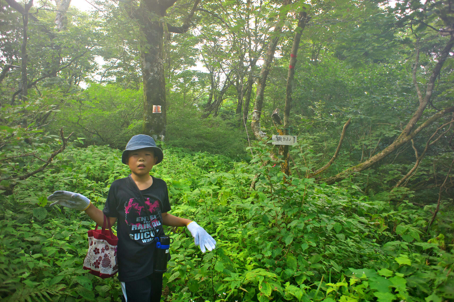 13:47 寂地山(1337m)で記念写真 登るのに4時間かかりました