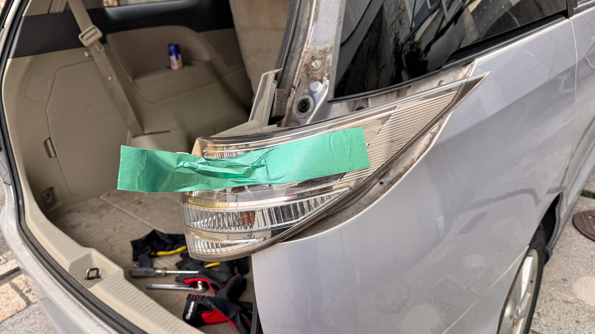 テールランプにガムテープで固定して引っ張らないと取り外しができない・・・中々難しい