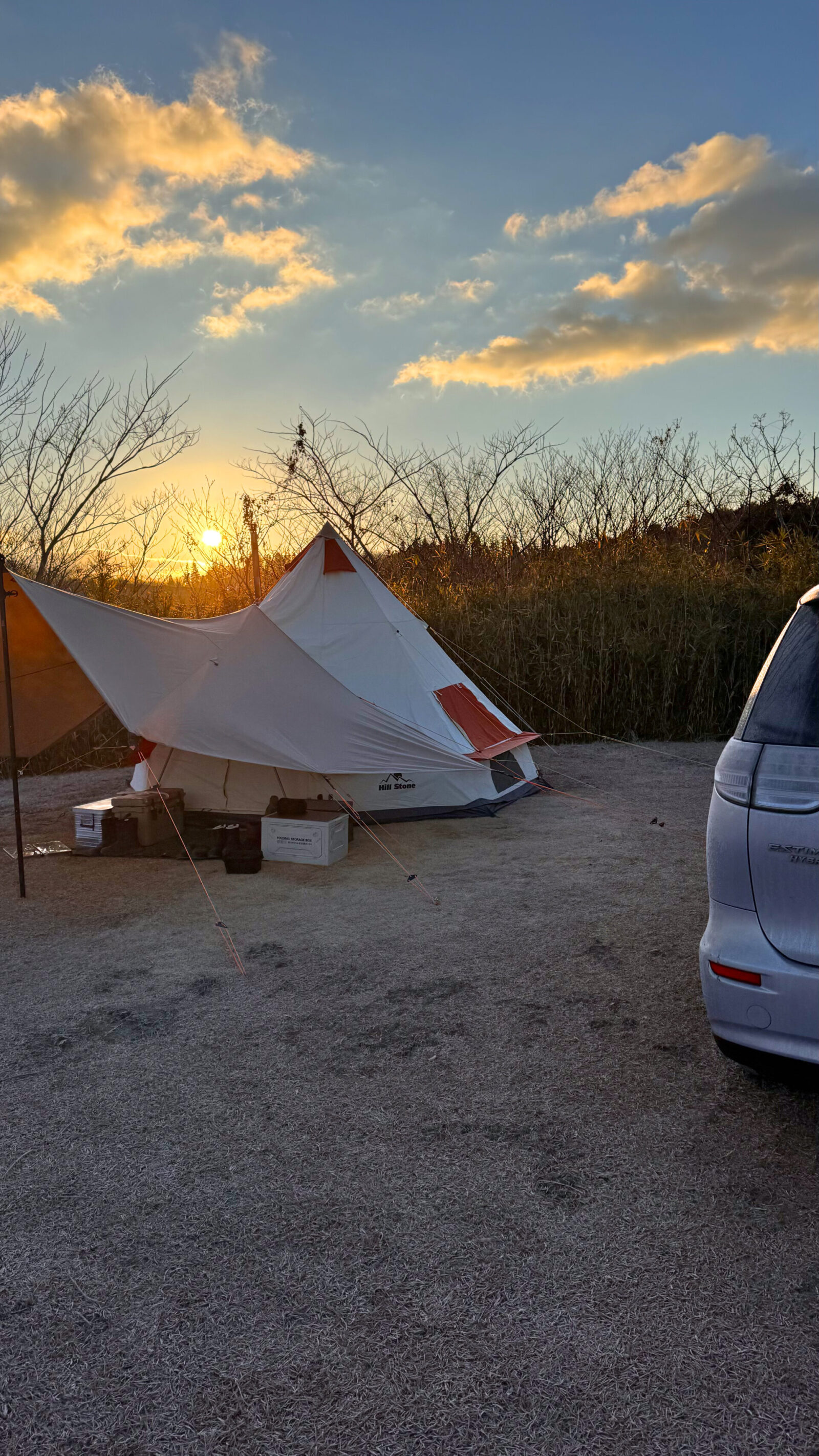 2日の夜半から寒波襲来で、かなり冷え込むが朝は快晴となった・・・テントを撤収するが、テントはかなり結露して濡れていた、テント撤収したのは11時ごろ、情報では、広島では大雪で山陽道は通行止めらしい・・ゆっくりと帰宅して、ギリギリで山陽道の通行止めは解除されたが、岩国から大渋滞となっていた・・ようやく19時過ぎに無事に帰宅できた