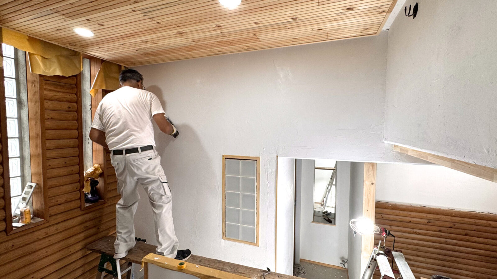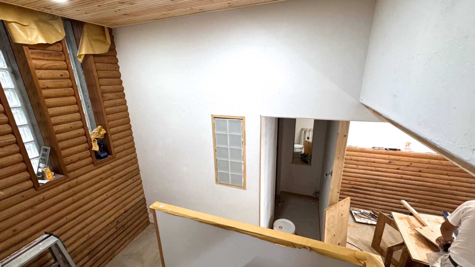 コメントはありません 半地下の改修 壁プラスター塗 から たんご・あるふぁ・まいく 2025/10/14 2025/10/14 DIY 階段周りの壁のプラスターを仕上げ あとは階段下の物入を製作 XZBさんの腕が冴える プラスターは磨きで仕上げ