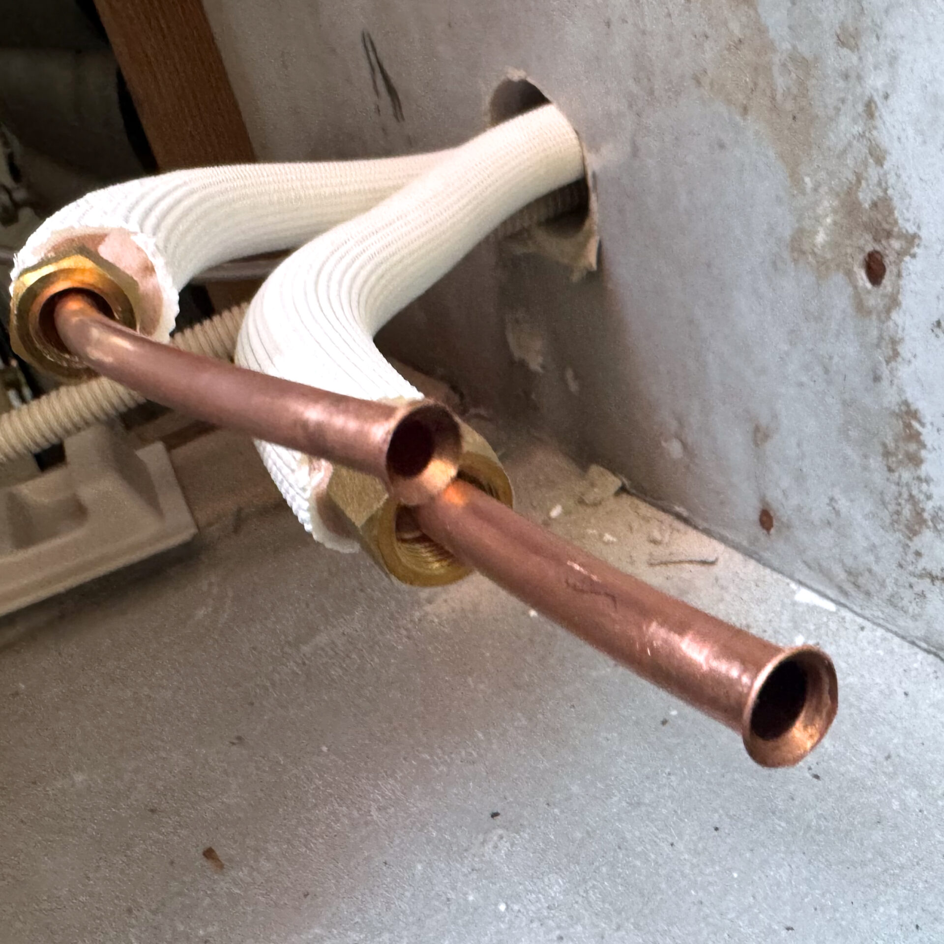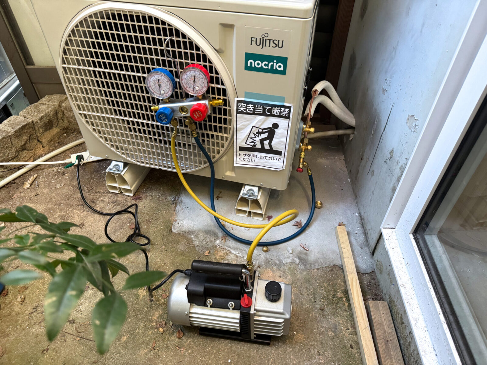 コメントはありません 半地下のエアコンの室外機配管 から たんご・あるふぁ・まいく 2025/12/09 2025/12/12 DIY 半地下のエアコンの室外機を配管して真空引きをする 真空にしてエア漏れをチェック 室外機の配管をして真空引きをしてエア漏れをチャックすると、漏れが発生・・・どうもチャージバルブから漏れているようだ・・・大事をとって今日はエアコンのバルブを開いてガスを充填するのはやめておく 銅管をカットしてフレア加工 ントロールバルブ エアコンガス チャージバルブ 1/4オス 5/16メスをセットして真空引き ▶この続きを見る・・・・
