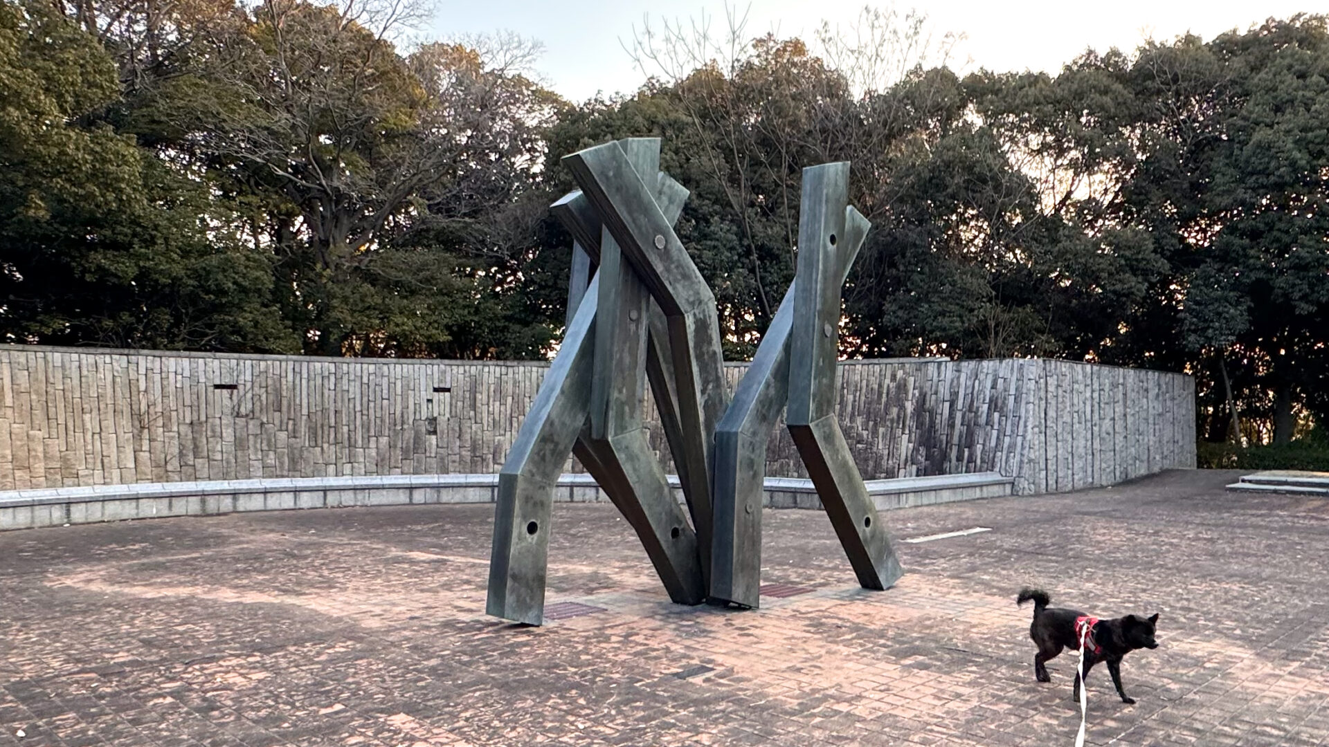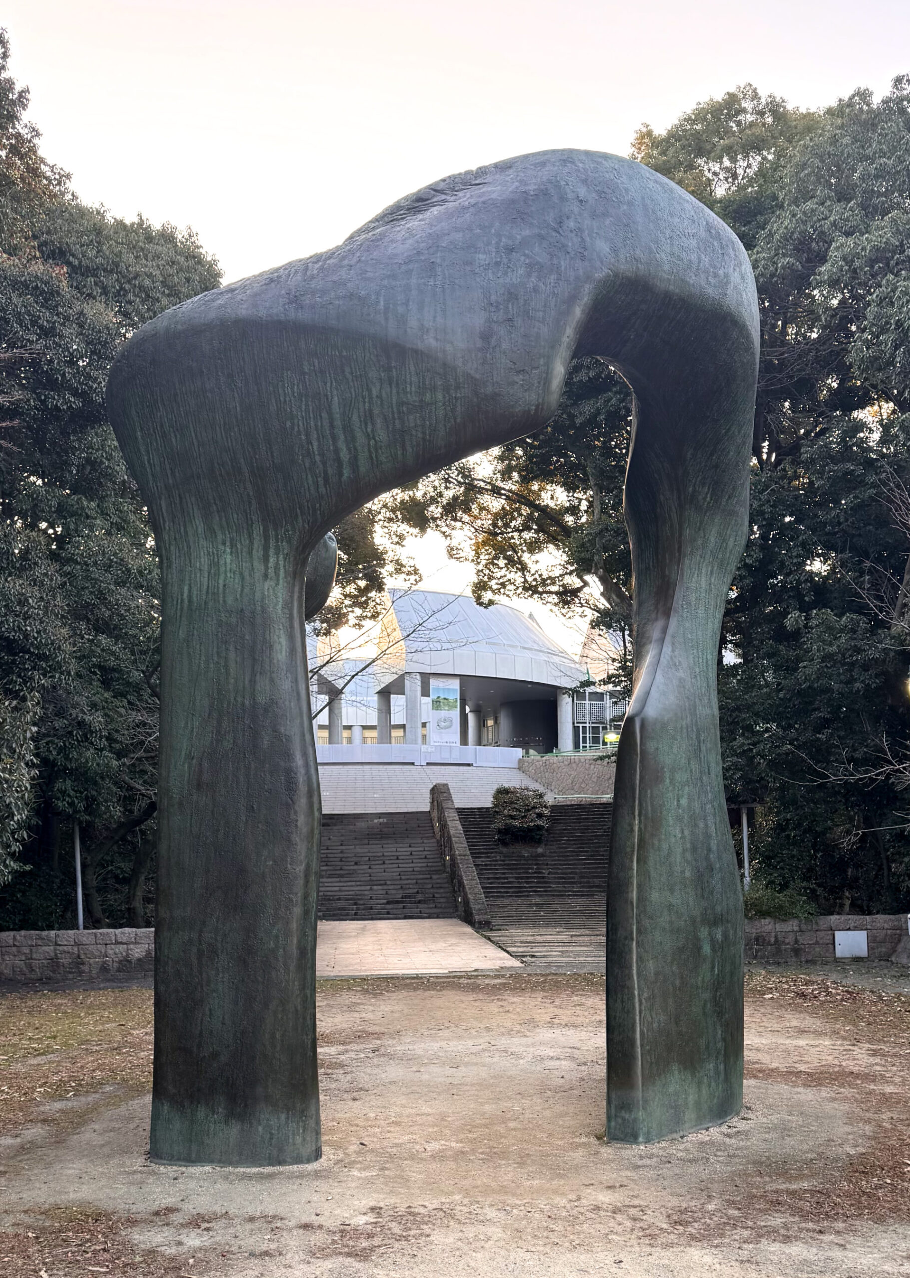 朝は7時にヨッシーをバスセンターに送って、比治山公園を散歩 ヘンリー・ムーアの彫刻「アーチ」