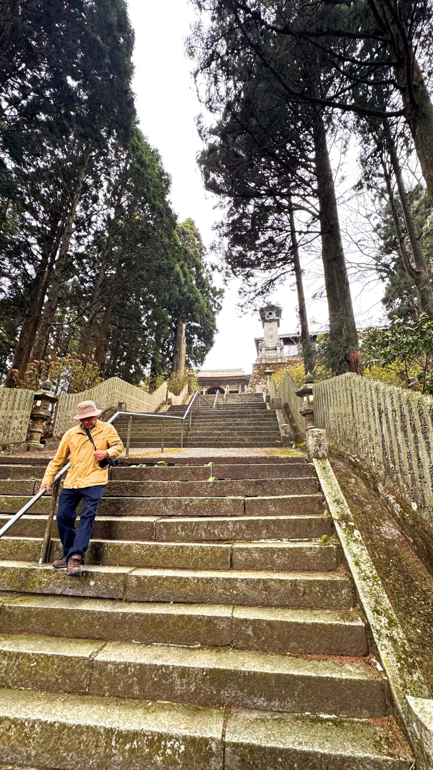 二日目は少し天気は下り坂・・・ホテルで食事をして8時には出発、内子から大洲に出て、長浜に向かい途中から出石寺に、海岸から一気に820mまで登る、途中から道は狭くなり、かなりの急カーブが続く、ようやく到着して駐車場から長い石段を上がると境内に入る・・・風が強く少し肌寒い・・・誰もいなかったが、帰りにお遍路さんと若い外人の遍路さんが登ってきた・・ここから八幡浜に下り、美味しいというパン屋さんで、塩パンを購入、サービスのコーヒーでちょっと一息、これから宇和島に向かうが、途中で道を間違えて林道を走り、宇和島城に・・宇和島城は山にあり下から石段を登る必要がある・・・この城は木造で復元した城、藤堂高虎が初めて立てた水城として知られている・・石段を登るのは大変、城は三層でこじんまり・・昼食の鯛めしを食べて、三浦半島へ行ってみる宇和海を堪能して、山中のホテルに・・・雨が降ってきた