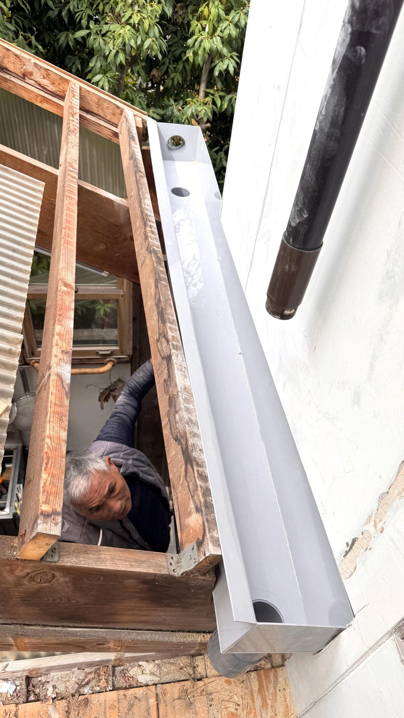コメントはありません 厨房の屋根の谷樋を交換 から たんご・あるふぁ・まいく 2026/04/24 2026/04/25 DIY, Food 新しい店舗を計画しているが、厨房にある谷樋は、既製品を使ったために、断面が不足し大雨ではオーバーフロー、塩ビで谷樋を製作、はじめはステンレスで考えていたが、少し安い塩ビ製に変更、今回はしっかりと断面を多くし、ゴミが詰まった時のオバーフロー対策も考えているXZBさんにお願いして交換をして、外壁周りのやり替えも実施屋根もポリカーボネイトをコロニアルに変更するかと思ったけど、今回は既存のまま復旧することに 新しい塩ビ製の樋をセットします XZBさんにお願いする 古い谷樋は断面が小さいので、大雨でオーバーフローしていた 厨房から谷樋を見上げる 夕食はうな丼を